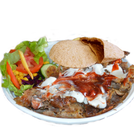 Kebab de ternera, pollo o mixto servidos en plato con lechuga, tomate y cebolla. Viene acompañado de nuestras sabrosas salsas y un pan. Selecciona más abajo las opciones disponibles para tu pedido.